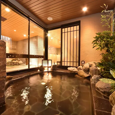 This hotel includes a hot spring public bath and a sauna to relax in after a busy day.