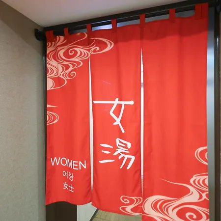 The property includes large public baths and sauna facilities.